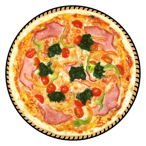 Состав: ветчина, грибы, лук, перец болгарский, моццарелла.