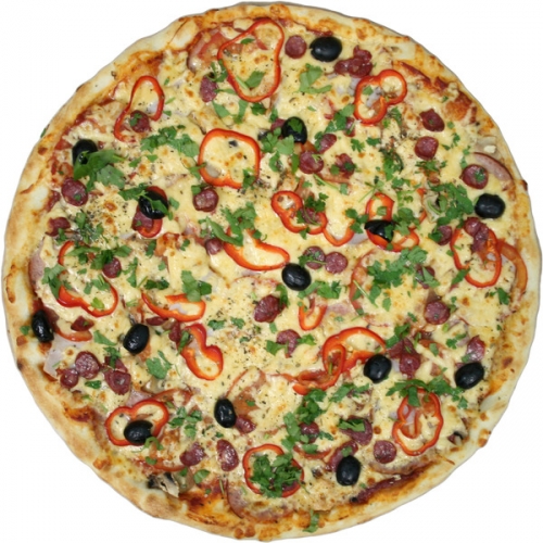 Состав: ветчина, салями, грибы, перец болгарский, моццарелла.