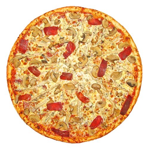 Состав: куриное филе, грибы, помидоры, моццарелла.