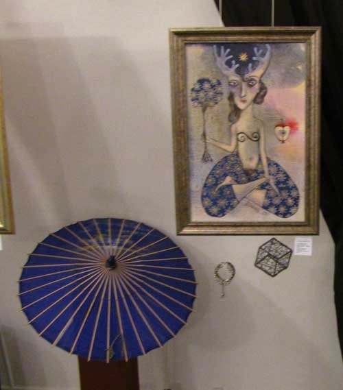 Экспозицию составляли сами сотрудники дворца Паскевичей, потому приехав на открытие меня приятно удивило и порадовало, что к каждой из работ был подобран дополнительный символьный антураж, отчего все выглядело карнавально-сказочно и получились такие вот истории с продолжением.