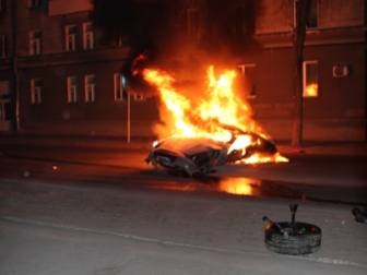 25 апреля в г.Гомеле примерно в 1.15 ночи 20-летний водитель, двигаясь на автомобиле Форд-Эскорт по ул. Победы со стороны ул. Советской при пересечении ул. Кирова не уступил дорогу Ниссану, который двигался по главной дороге. От столкновения автомобиль Ниссан выехал на тротуар, где совершил наезд на светофорный объект, после чего автомобиль загорелся. В результате аварии пострадали 26-летний водитель Ниссана и его 24-летний пассажир.