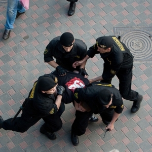 «На этот раз мы не стояли, а сидели на скамейках. Рядом стояли спецназовцы, оживленно разговаривали и часто смеялись. Оператор в окружении силовиков в штатском снимал нас на видео», — сообщил один из участников акции Радио Свобода.