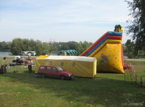 Хмурые рабочие занимались оснащением сцены, в то же время на берегу озера Любенского монтировали и проверяли аттракционы и торговые палатки.