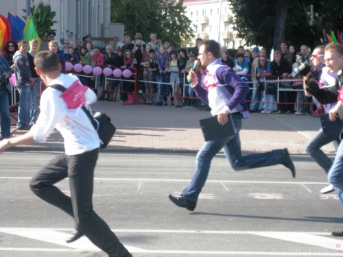 Очаровательным зрелищем был забег фотографов – с камерами, сумками. На бегу они еще умудрялись фотографировать друг друга. В следующем забеге участвовали оставшиеся незадействованными фотографы и ведущий – кстати, последнему однозначный зачет, он продолжал вести мероприятие, не прерываясь ни на минуту.