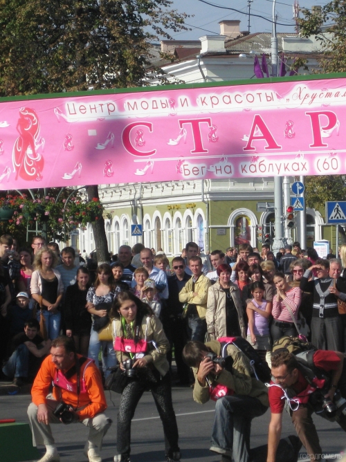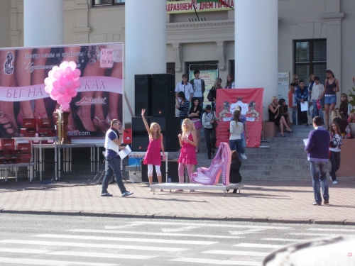 На площади Ленина можно было посмотреть на «Бег на каблуках» – честно говоря, достаточно сомнительная акция, которая, тем не менее, привлекает внимание. Вкратце об условиях – вдруг их еще кто-то не знает, в общем, участницей (как выяснилось в этот раз, и участником) может стать каждый, кто пришел в обуви на каблуках с каблуком не менее 7 см.