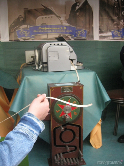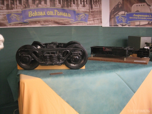 Сразу возле входа стоял паровоз – символ первого павильона, вокзала станции Гомель. В павильоне кратко представлялась история вокзала, работал старинный телеграфный аппарат – на котором печатались небольшие поздравительные тексты для желающих.