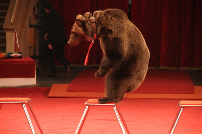Аттракцион «Забавные медведи» — начинается довольно-таки экстремальным номером. На сцену выходит мишка – один, без дрессировщиков, без сетки от хищников, и начинает выполнять трюки. Зрители в восторге. Правда, встречаются и курьезные случаи – например, когда медведь вдруг решил прогуляться по залу.