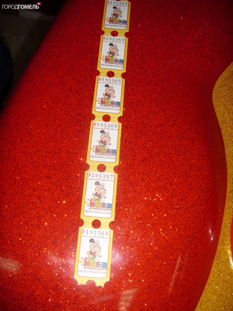 Стоимость одной игры на игровом автомате начинается примерно от 3 тыс. бел. руб. Но, если хорошо пройти игру, можно заработать бонус-баллы, выдаются в виде билетиков. На территории центра полученные билетики можно обменять на товары, от мелочевки вроде карандашей и стерок, до приличных мягких игрушек, там же, где приобреталась карточка и пополнялся счет.