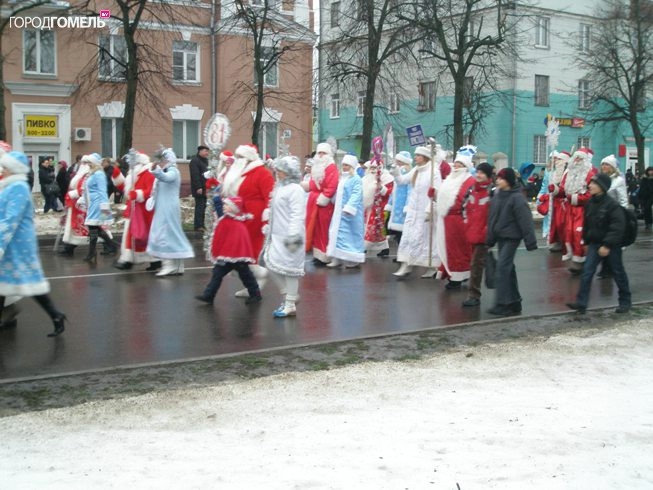 25 декабря, уже традиционно в Новобелицком районе Гомеля прошёл парад Дедов Морозов и Снегурочек