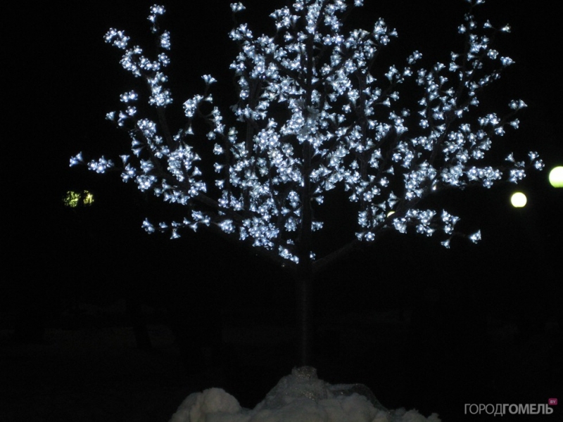 На днях власти города сделали гомельчанам подарок — в парке Луначарского появилась цветущая сакура, выполненная из фонариков. Мы обещали разместить фотографии и поделиться впечатлениями.