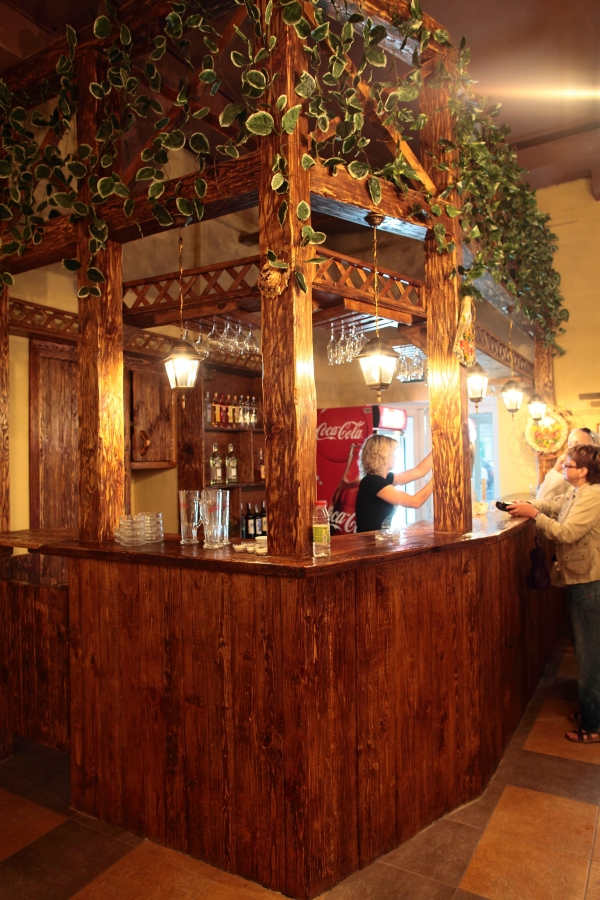— В зале ресторана, помимо основного стола с напитками, есть отдельно-стоящая барная стойка с большим выбором алкогольных и безалкогольных напитков, поэтому, посетитель также сам может выбрать тот или иной напиток.