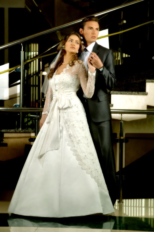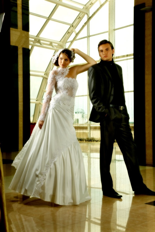 На фото – профессиональные модели Андрей Федосов и Екатерина Дупанова, съемка для свадебного салона «Их двое»
