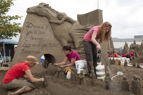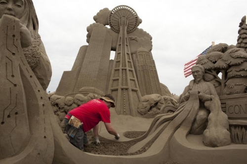 На Чемпионате мира по созданию скульптур из песка, который проводился в штате Вашингтон с 8 сентября по 3 октября, художники со всего мира боролись за титул в трех категориях: соло, дуэт и команда.