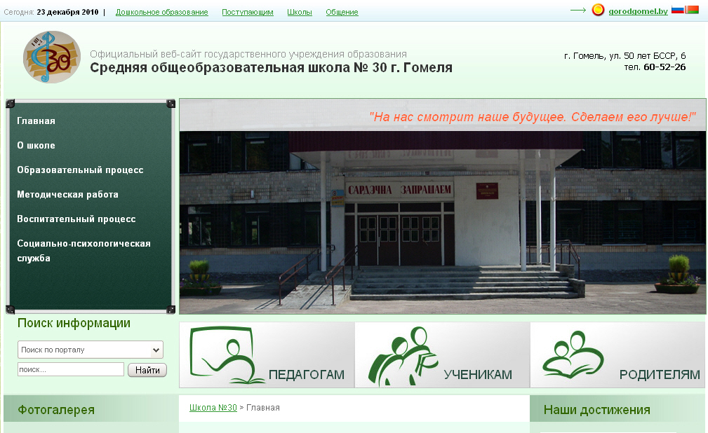 Официальный сайт учреждения образования средняя общеобразовательная школа № 30.