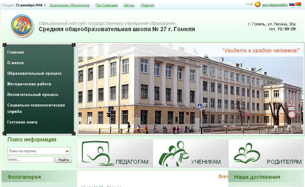 Официальный сайт учреждения образования средняя общеобразовательная школа № 27.