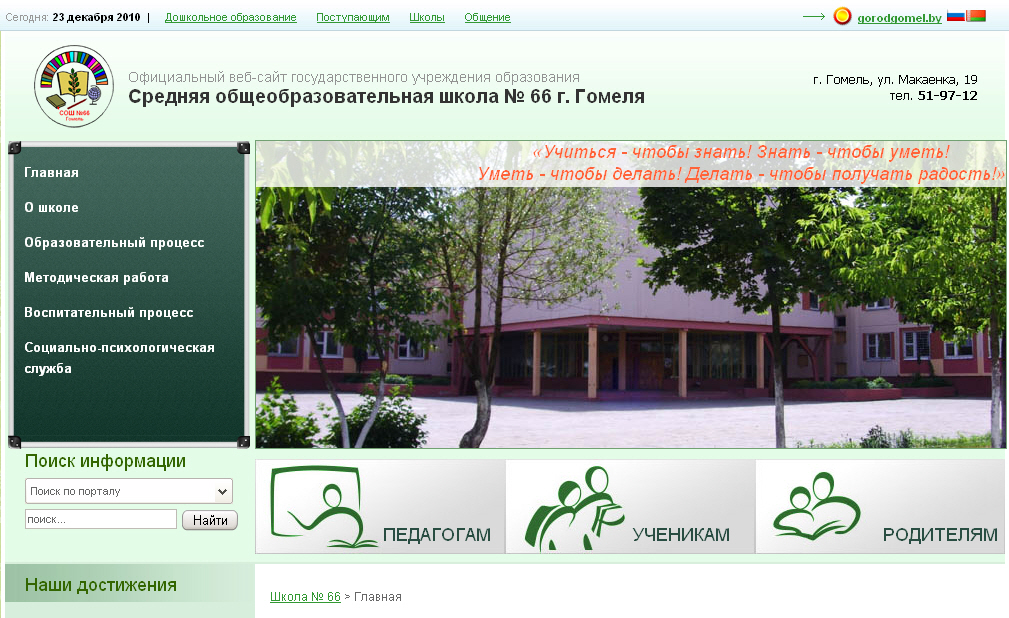 Официальный сайт учреждения образования средняя общеобразовательная школа № 66.