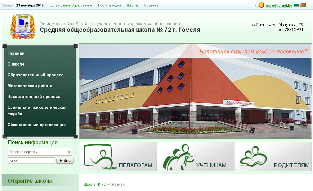 Официальный сайт учреждения образования средняя общеобразовательная школа № 72.