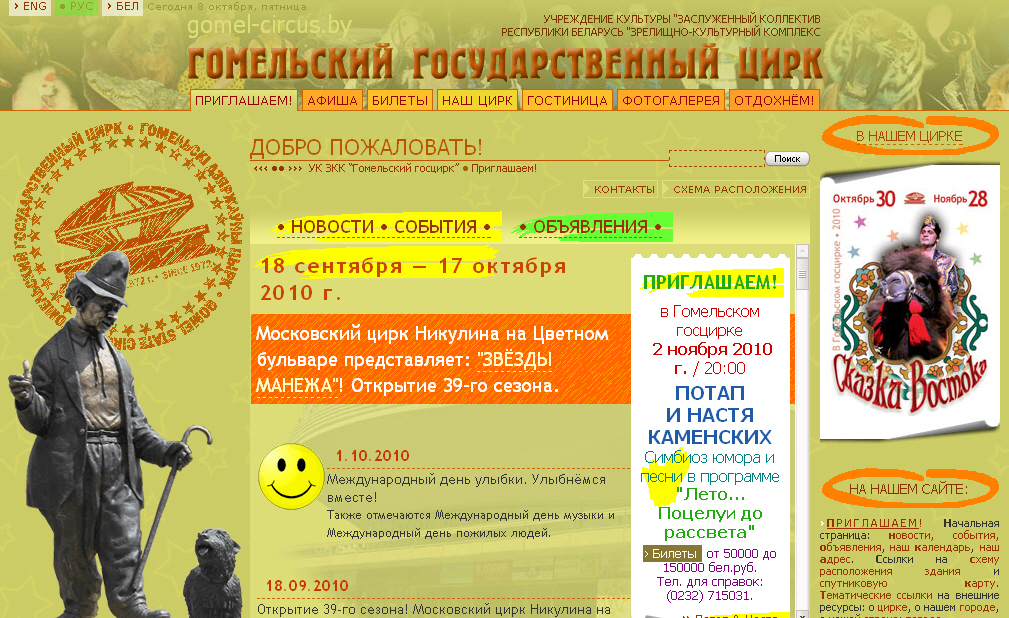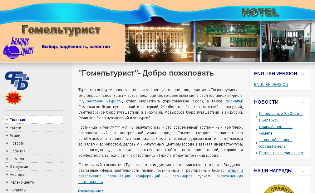 Сайт Туристско-экскурсионного частного дочернего унитарного предприятия «Гомельтурист» - многопрофильное туристическое предприятие, которое включает в себя гостиницу «Турист» ***, ресторан «Турист», отдел маркетинга (туристическое бюро).