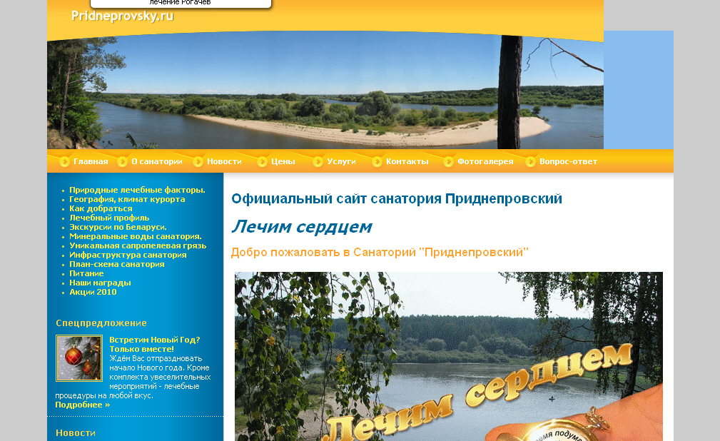 Официальный сайт санатория "Приднепровский" курорт, лечение Рогачев.