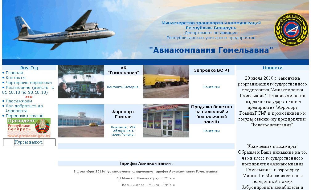 Официальный сайт РДУП "Гомельавиатур" и авиакомпании "Гомельавиа" Gomelavia.