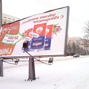 Огромный рекламный щит возле госуниверситета имени Скорины ветер перевернул вверх ногами.