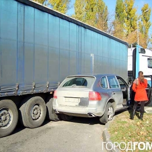 17 октября около 12.40 на Речицком шоссе неподалеку от остановки «Гомельоблавтотранс» водители иномарки и болшегрузного автомобиля ухитрились не поделить дорогу при повороте направо. В результате фура прижала легковушку бортом прицепа к бордюру.